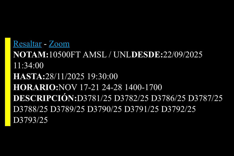 A NOTAM (Notice to Airmen) is an official text notice issued by aviation authorities to report temporary airspace conditions: closures, military exercises, event restrictions, aerodrome works, etc. It does not contain colours in its original form: it is a text with codes, dates, times and vertical limits.